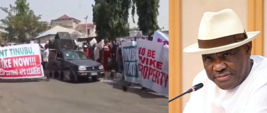 Protesters have taken to the streets of Abuja, storming the national headquarters of the All Progressives Congress (APC) to demand the removal of Nyesom Wike as Minister of the Federal…