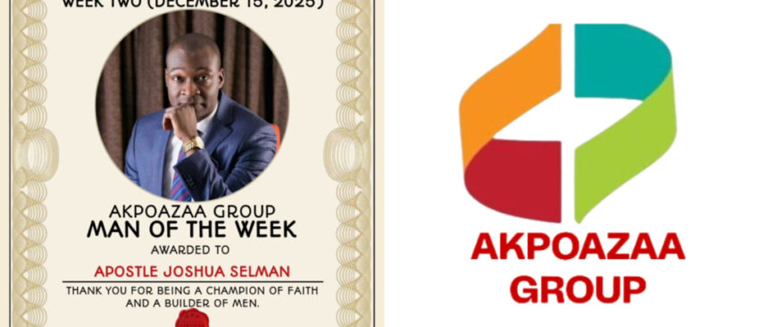 As part of efforts to institutionalise the culture of recognising service and impact, the Akpoazaa Group has named Apostle Joshua Selman as its Man of the Week.