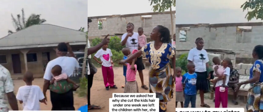 A family dispute has gone viral after a woman confronted her sister-in-law for allegedly shaving the hair of her four children without permission.