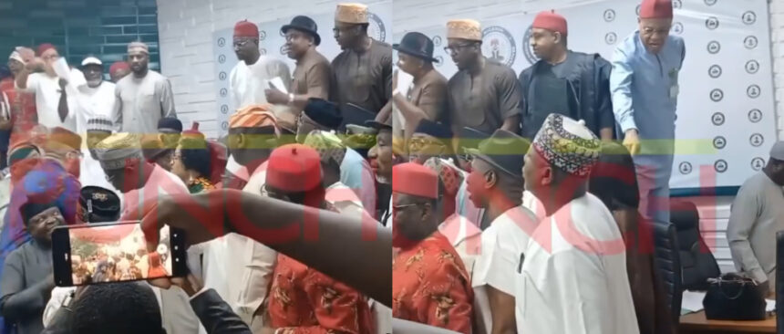 The aggrieved members prevented Deputy Speaker Benjamin Kalu from continuing proceedings before eventually walking out of the plenary, shouting “APC Ole” (“APC thieves”) as they left.