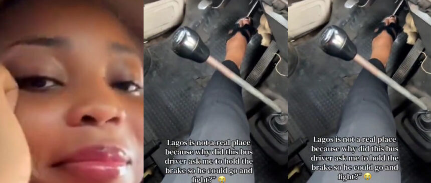 A video of a Lagos passenger holding down the car brake while her driver stepped out to join a street fight has gone viral, sparking both amusement and disbelief.