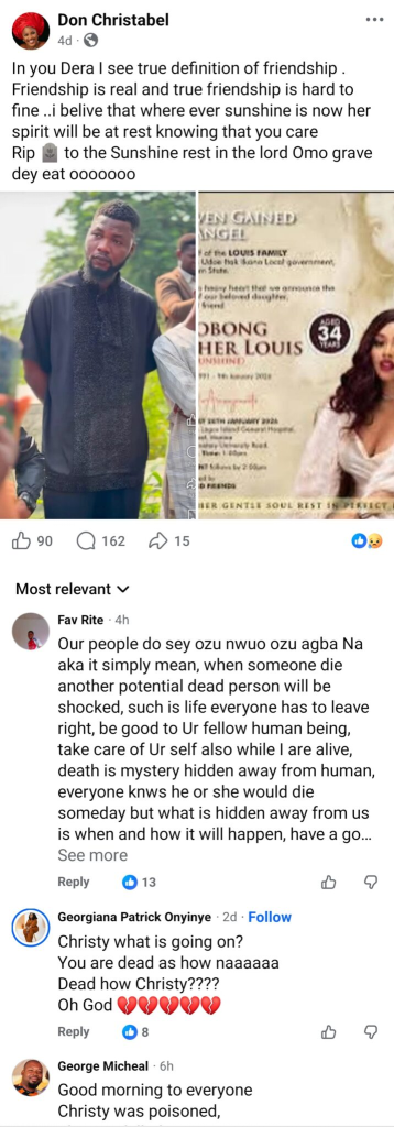 A young lady named Don Christabel has tragically passed away under unclear circumstances, just days after she publicly mourned the loss of a close friend on social media.